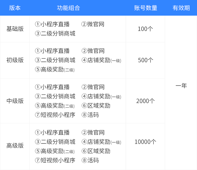 • 注:中、高级套餐账号包含直播、短视频、活码…等更多强大且实用的功能,可帮助企业更好的玩转私域流量和线上线下的闭环营销。故单个账号市场零售价为:¥12800元